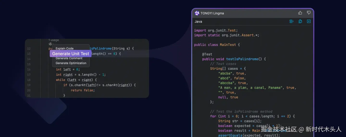 通义灵码,作为您的智能编码助手,可以在您进行编码工作遇到疑问时帮您答疑解惑,并快速为您生成建议代码,能够帮您生成代码注释、生成单元测试、进行代码优化、解释工程和代码文件、修复代码问题、排查编译报错、生成提交信息等。