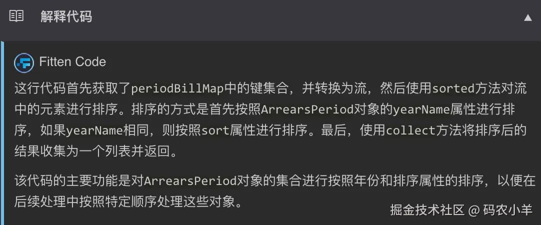 树哥非常喜欢这个功能,它在我看某些复杂的语法代码的时候特别好用,例如:JDK1.8 Stream 语法。Stream 语法太多,总不可能都记住,这时候用这个功能就非常合适。你看上面的代码解释,就是对于如下这行代码的解释,是不是非常方便呢!