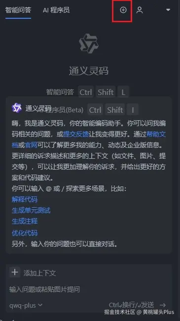 + 号按钮,点击即可创建新对话。