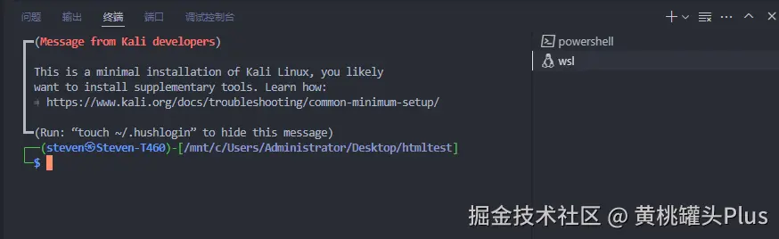以 WSL 为例,安装完对应的插件后,在终端界面可以看到我们的 WSL 环境。