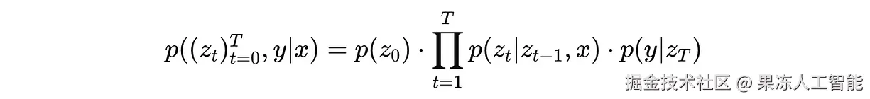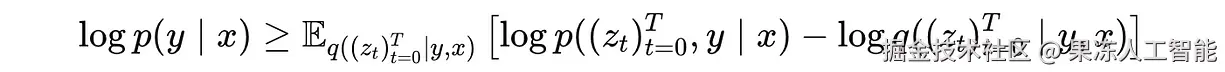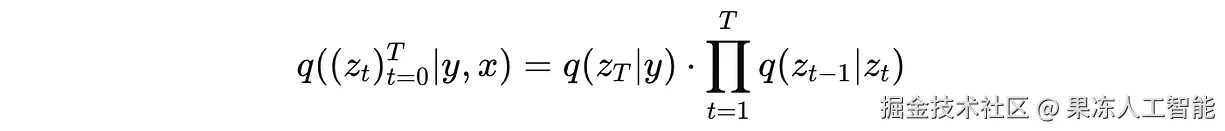 数学上来说,它是所有中间噪声表示 z(0), …, z(T) 和标签 y 在给定输入 x 下的联合概率。