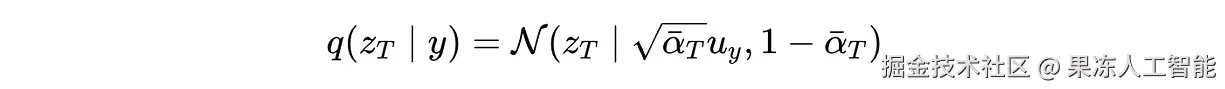 这表示这是一个关于潜变量 z(T) 的高斯分布,其中 √αˉ(T)⋅ u(y) 是均值,1 — αˉ(T) 是方差。