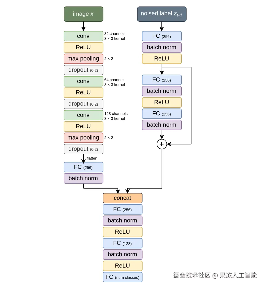 NoProp 算法借鉴了扩散模型(原本主要用在图像生成任务中的思路),把它用在了图像分类(监督学习)任务上。