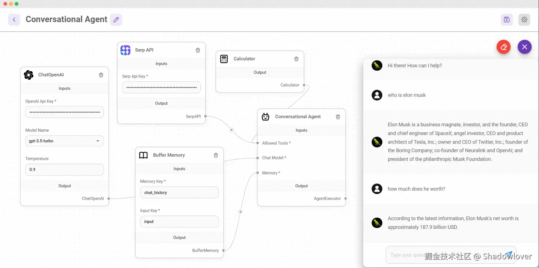 - 有记忆的会话代理:聊天模型的会话代理,它利用聊天特定提示和缓冲存储器