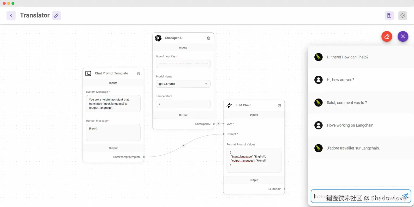- Language Translation Chain:使用带有聊天提示模板和聊天模型的 LLM Chain 进行语言翻译