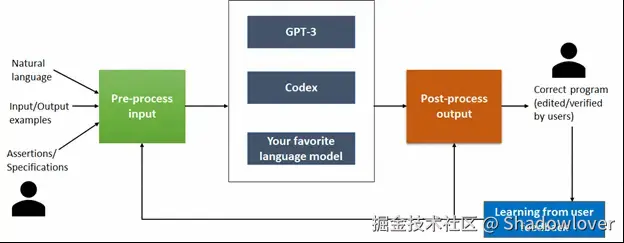 Jigsaw 获取英语查询并使用适当的上下文对其进行预处理,以构建可以馈送到大型语言模型的输入。该模型被视为一个黑盒子,并且 Jigsaw 已使用 GPT-3 和 Codex 进行了评估。这种设计的优势在于它支持即插即用最新和最好的可用型号。
