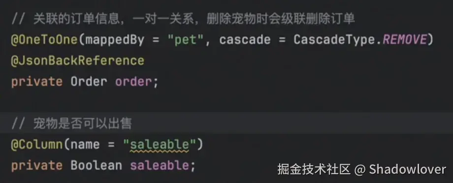 例如在某代码项目中,我们给 Pet 对象,新增加了一个 saleable 属性。
