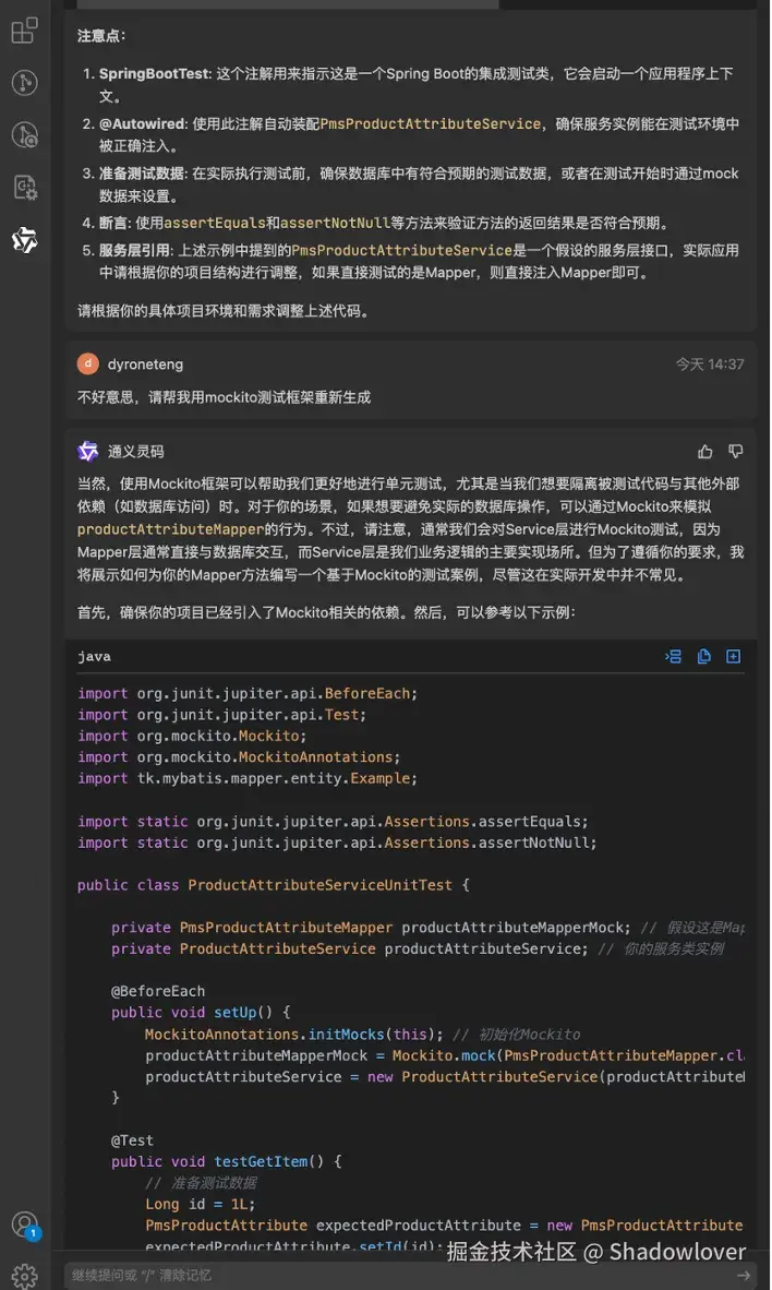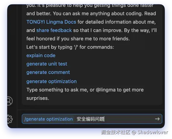 备注说明: 由于优质的提示词往往也需要输入较多内容,这部分技巧比较适合配合通义灵码即将推出的自定义提示词功能一起使用。当前阶段可以先手工输入或将提问模板复制粘贴到问题里再编辑。