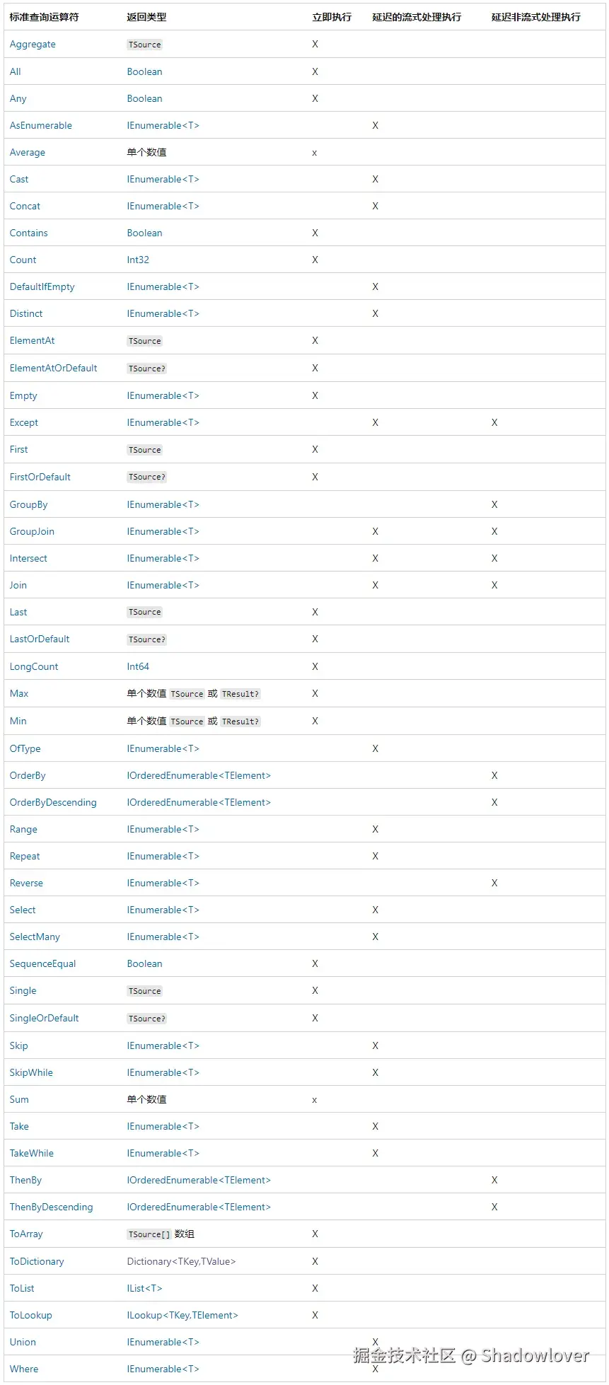 ToList()、ToArray()、ToDictionary()、FirstOrDefault()等方法可立即执行。 - 支持多种数据源:LINQ可以用于查询多种数据源,如