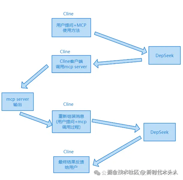 在这张图中, Cline充当了chat对话以及mcp客户端的功能。