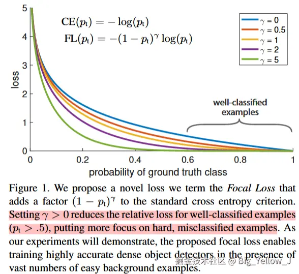 **Focal Loss**主要用于处理样本失衡问题(样本里面标签不平衡问题,比如说目标识别,可能会得到很多框,但是可能只要一个框是所需的),其原理也很简单可以直接在原交叉熵基础上补充一个 因子即可。