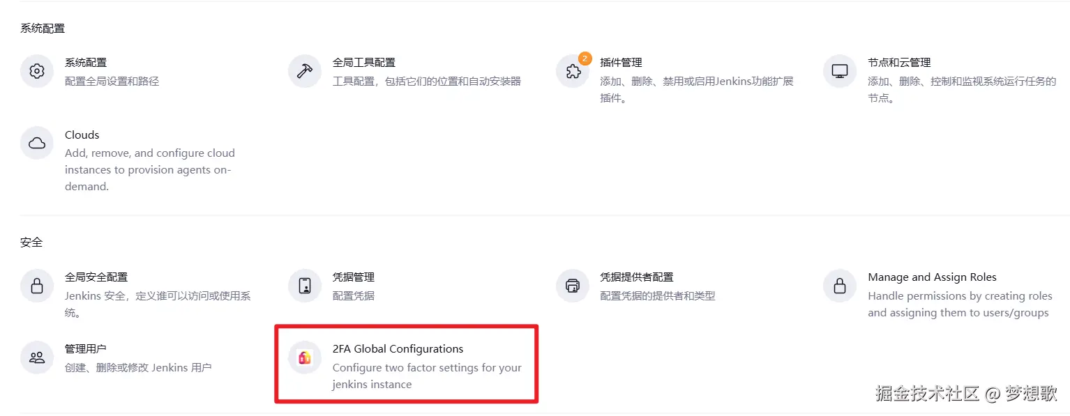 插件安全完成后,在系统管理出现新的选项 2FA Global Configurations。