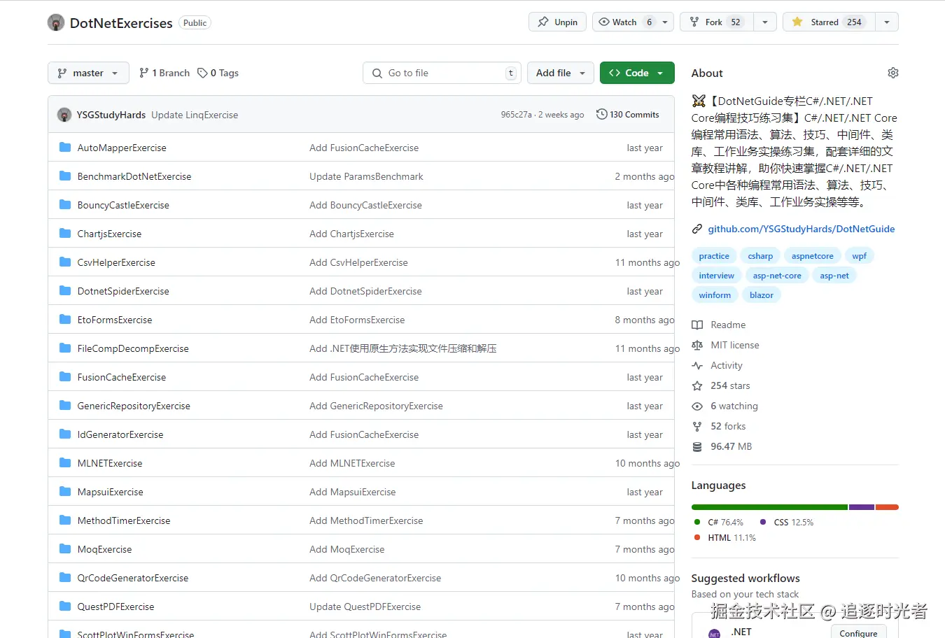 C#/.NET/.NET Core编程常用语法、算法、技巧、中间件、类库、工作业务实操练习集,配套详细的文章教程讲解,助你快速掌握C#/.NET/.NET Core中各种编程常用语法、算法、技巧、中间件、类库、工作业务实操等等。
