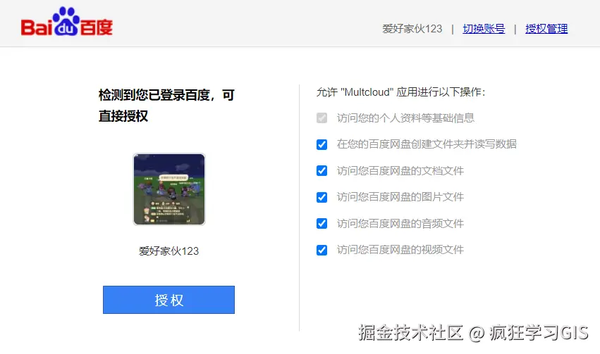 随后,点击上图右下角的“Add BaiDu”,即可出现百度账号的授权页面;如下图所示。