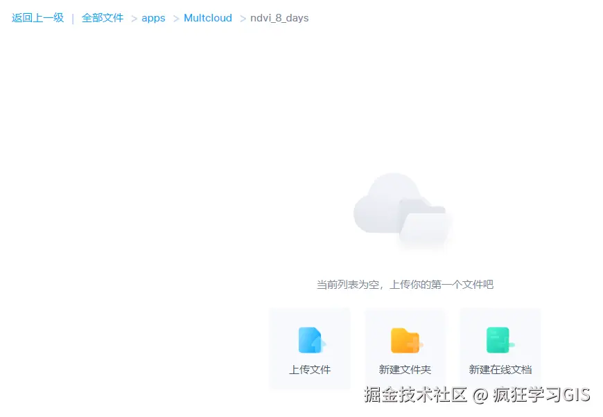 打开我的目标网盘,可以看到虽然其建立了目标文件夹,但是其中并没有任何数据;如下图所示。