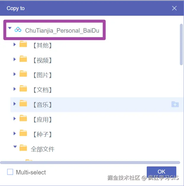 在选择了这个“Copy to”选项后,还可以选择另一个网盘作为我们“Copy to”选项的目标位置。