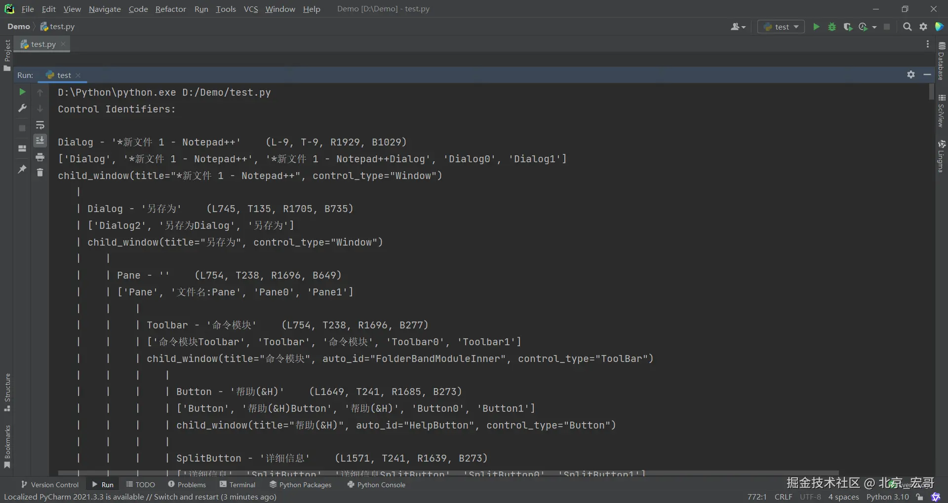 print_control_identifiers()输出所有控件信息辅助调试。 - 调整