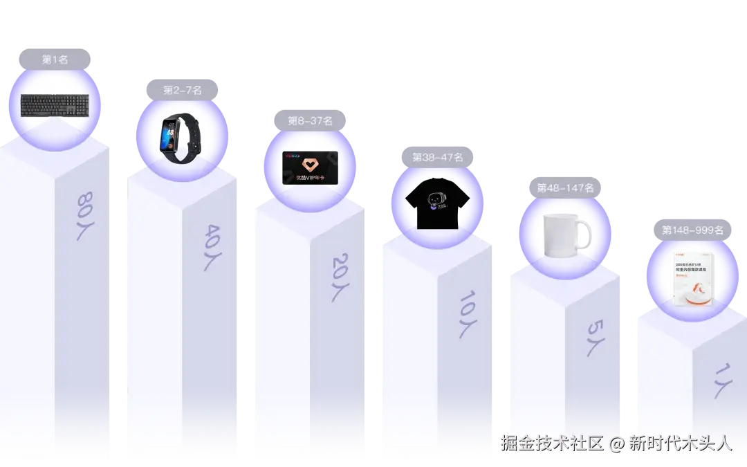 活动规定日期前分享活动页面给好友完成新用户体验任务,根据邀请人数+排名综合结果赢取奖励,机械键盘、智能手环、优酷 VIP 年卡、通义灵码定制 T 恤……丰厚好礼等你挑战!