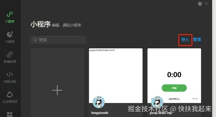 当代码生成完之后,我们把这个文件导入微信开发者工具。