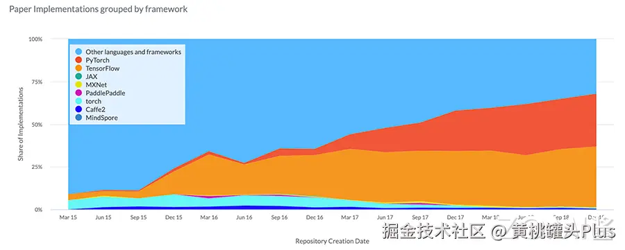 2016 年谷歌开源了 TensorFlow 框架,Meta AI 研究团队也发布了基于动态图的 AI 框架 PyTorch,该框架拓展自 Torch 框架,但使用了更流行的 Python 进行重构整体对外 API。Caffe 的发明者加入了 Meta(现更名为 Meta)并发布了 Caffe2 并融入了 PyTorch 的推理生态;与此同时,微软研究院开发了 CNTK 框架。Amazon 采用了这是华盛顿大学、CMU 和其他机构的联合学术课程 MXNet。国内百度则率先布局了 PaddlePaddle 飞桨 AI 框架并于 2016 年发布。