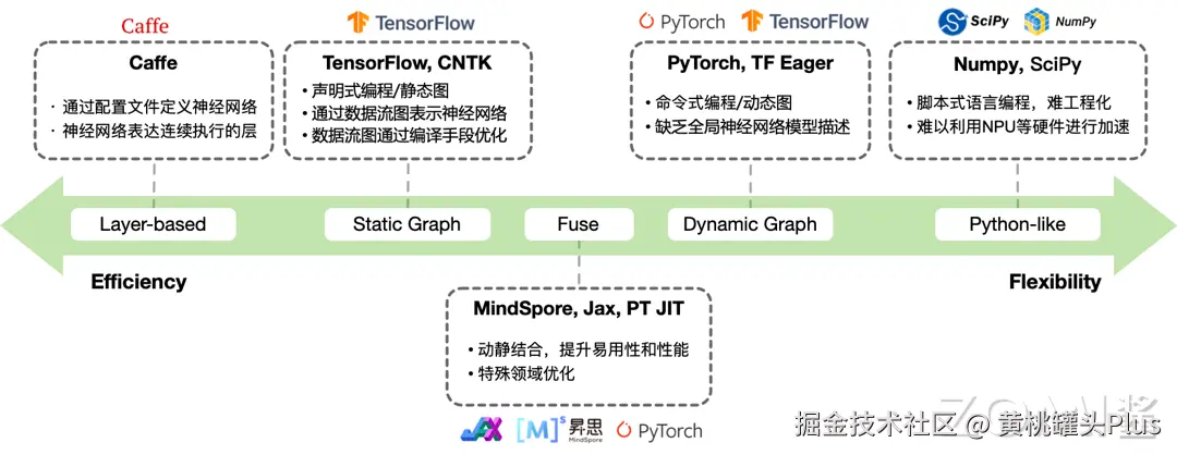 同时,第一代 AI 框架的缺点也比较明显,主要集中在 1)灵活性和 2)面向新场景支持不足。