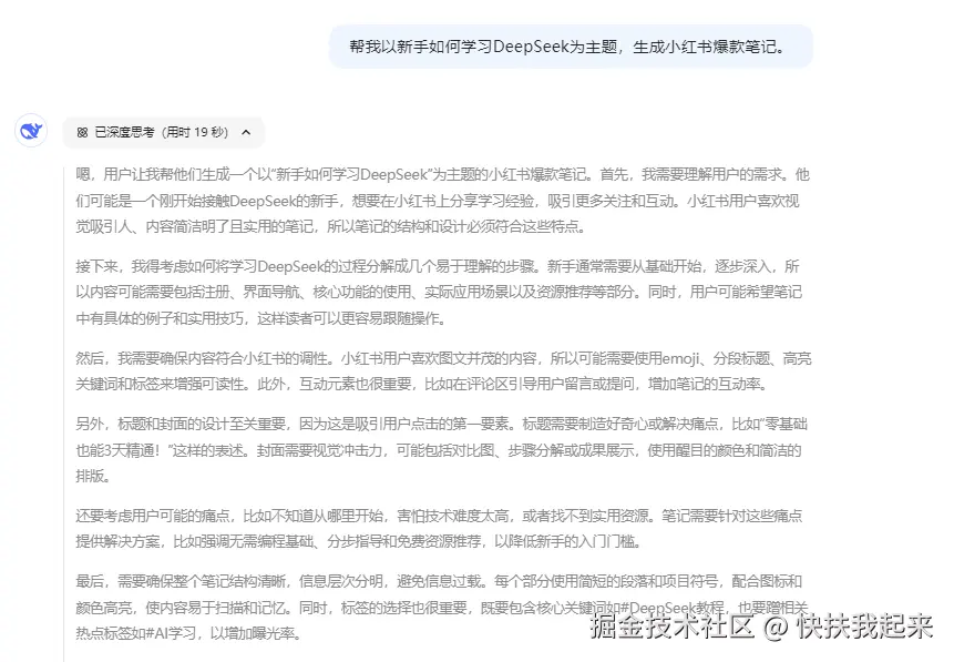 对于小红书创作者,同样可以利用 DeepSeek 辅助来生成小红书爆款图文。