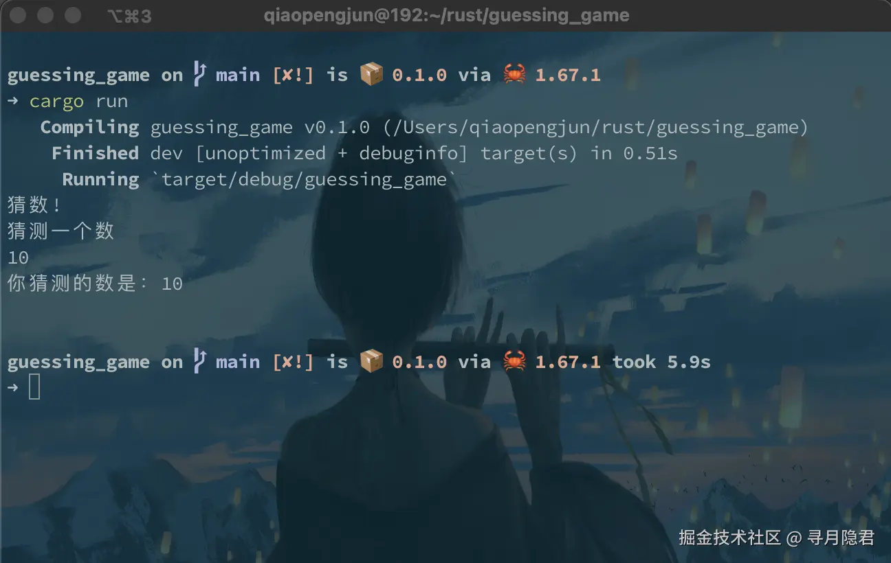 Compiling guessing_game v0.1.0 (/Users/qiaopengjun/rust/guessing_game)