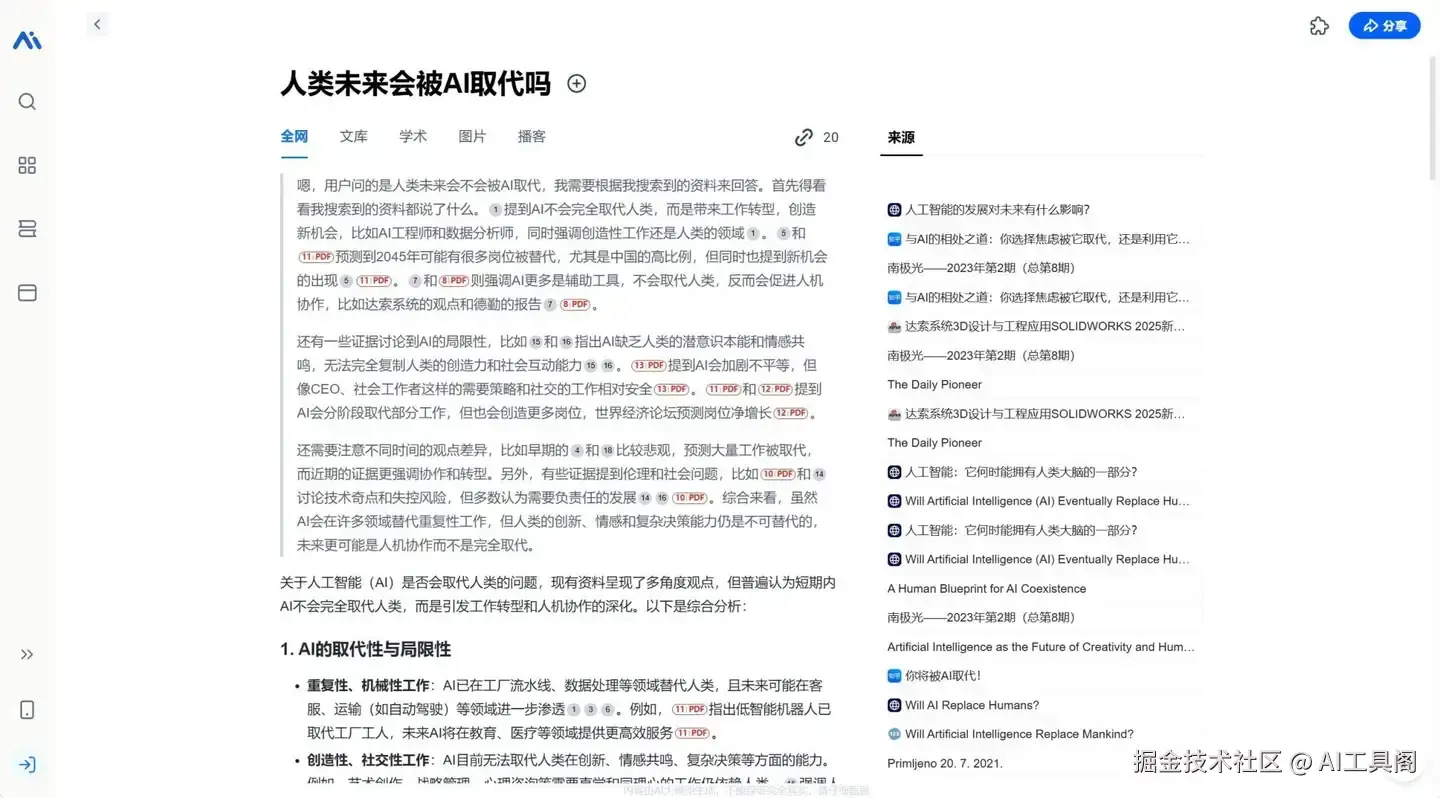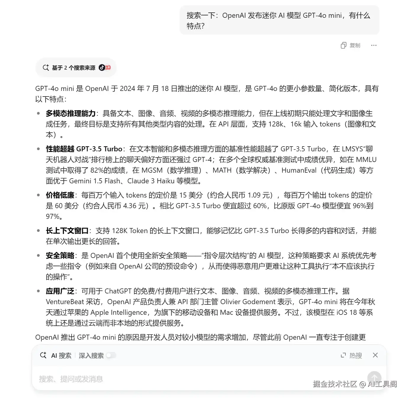 纳米AI搜索是由360集团研发的新一代多模态内容创作引擎,融合搜索与创作功能,基于CoE(专家协同)技术架构,整合国内16家主流AI厂商的50余款大模型(如DeepSeek-R1、文心一言、通义千问等),提供从信息检索到内容生成的全链条服务。