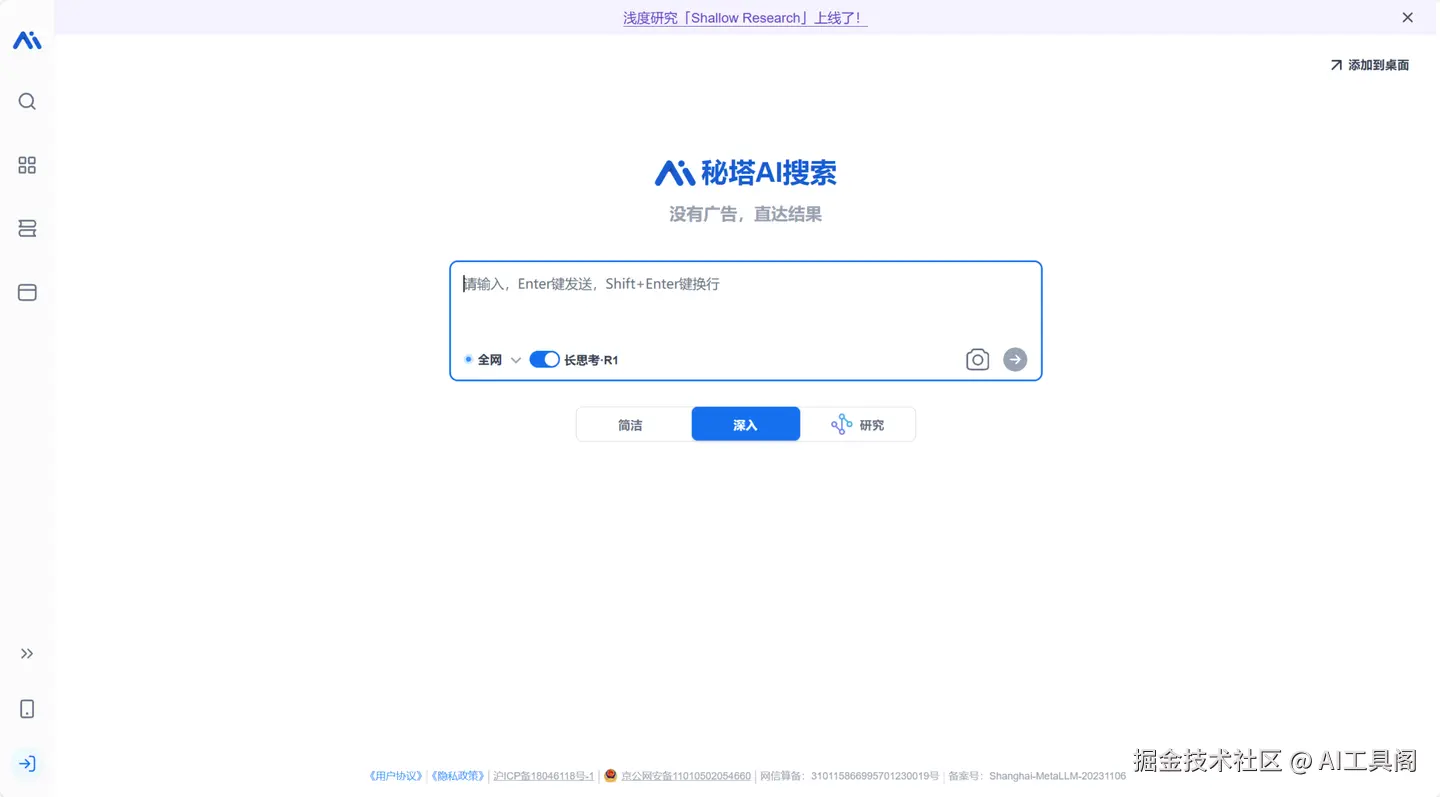 秘塔AI搜索是由上海秘塔网络科技有限公司开发的AI驱动搜索引擎,基于自研大语言模型MetaLLM,致力于通过语义理解与智能整合,为用户提供无广告、结构化、高质量的搜索结果。其核心目标是以算力替代人力,提升专业场景下的信息处理效率,目前已覆盖数千万用户,并在法律翻译、学术研究、AI写作等领域实现技术落地。