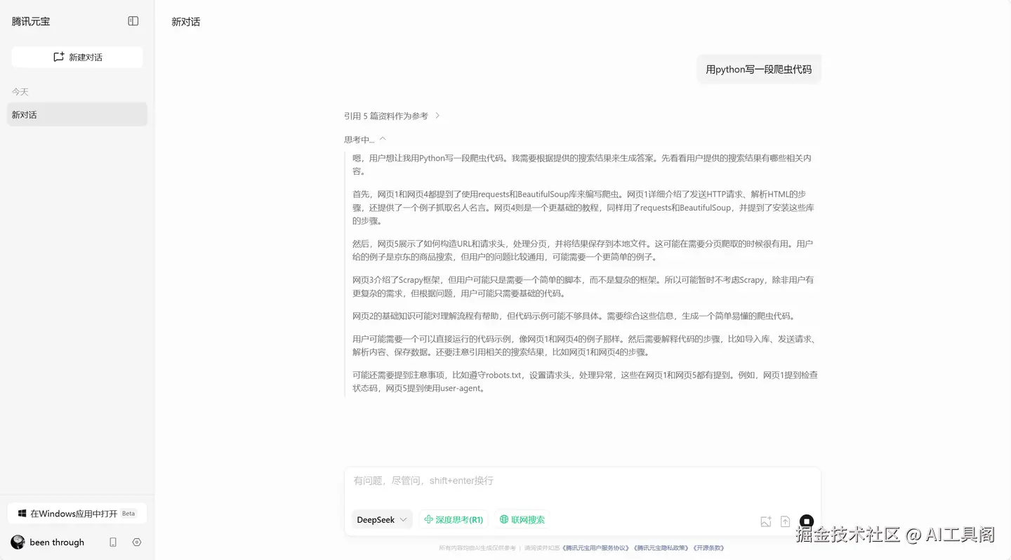 腾讯元宝是腾讯旗下自研混元大模型和DeepSeek技术打造的免费AI智能助手,覆盖网页、移动端(Android/iOS)、微信小程序及电脑版(Windows/macOS),提供智能问答、文件解析、内容创作、多模态交互等核心功能,支持满血版DeepSeek R1联网识图。