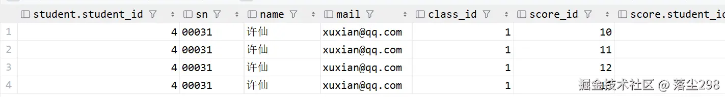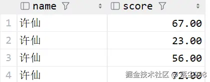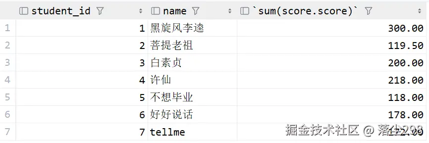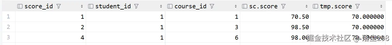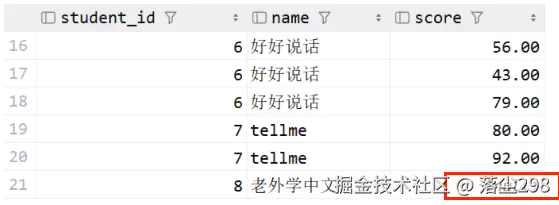 接下来用表中的真实成绩和临时表比较