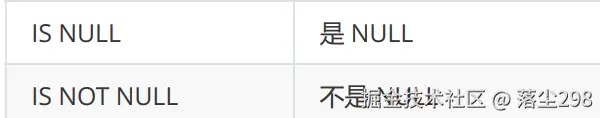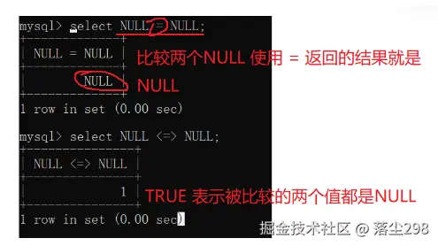 | <=> | 表示等于,是专门针对null判断的,例如null <=> null 的结果为1 |
