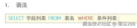 2.在查询过程中,要根据指定的查询条件把符合条件的数据过滤出来,这时执行的是 where 字句