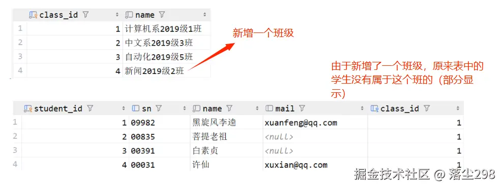 -- 得出许仙的 class_id 是 1