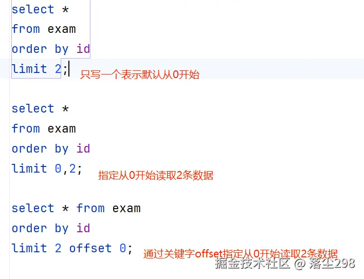 例如从第0条开始,往后读取2条数据有一下这几种写法: