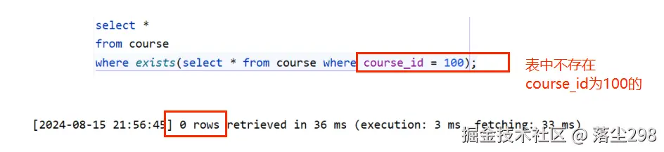 exists 后面括号中的查询语句,如果有结果返回就执行外层查询,如果返回的是一个空结果集,就不执行外层的查询
