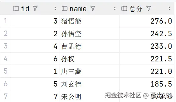 4.根据 order by 子句的列名和排序规则进行最后的排序