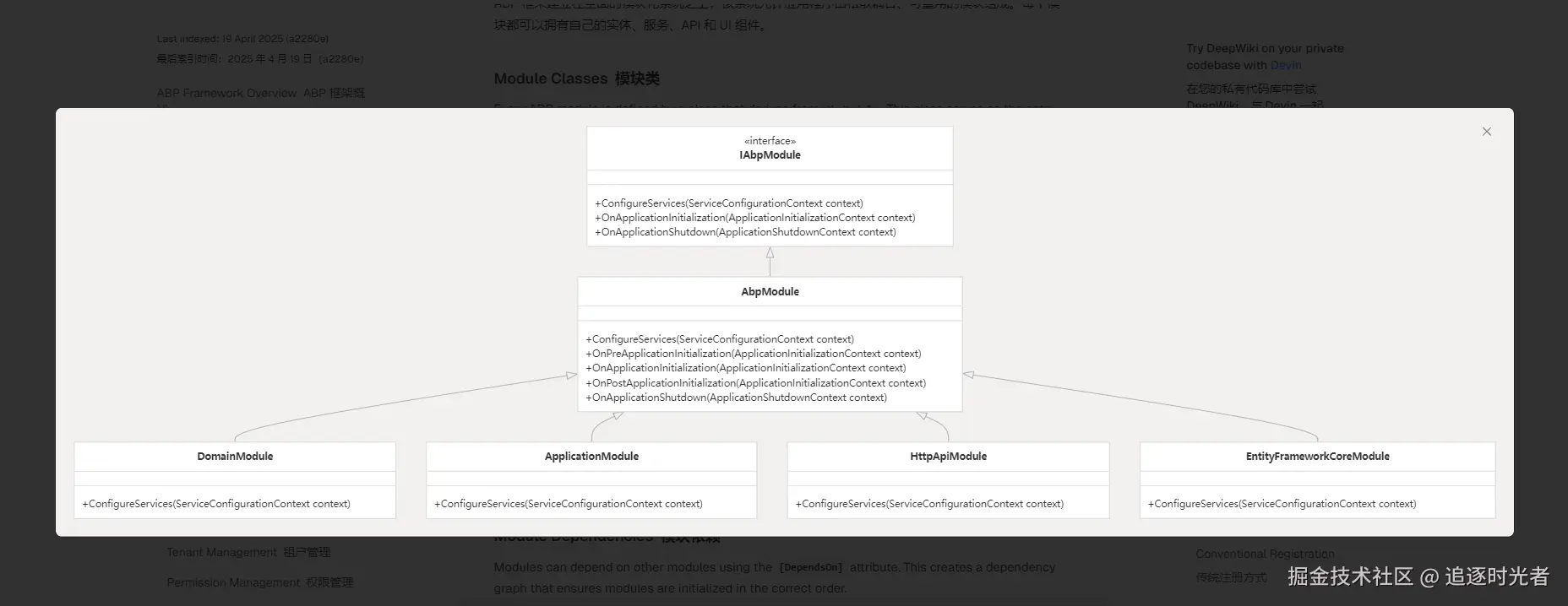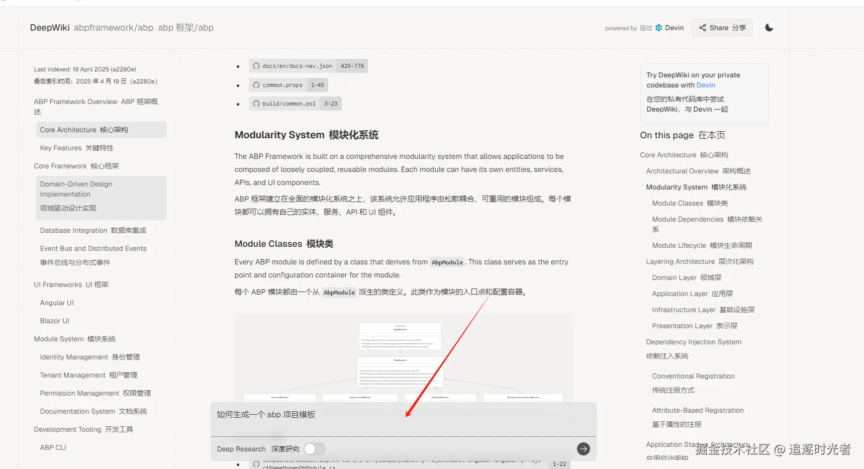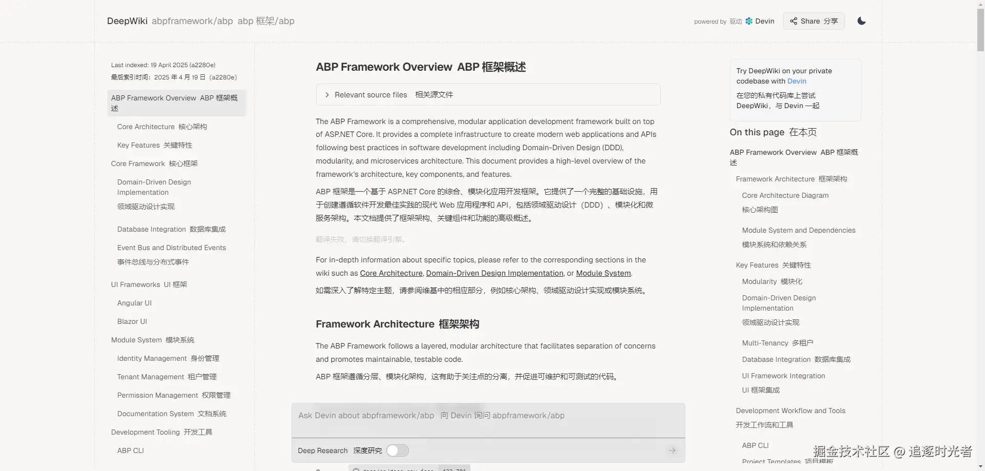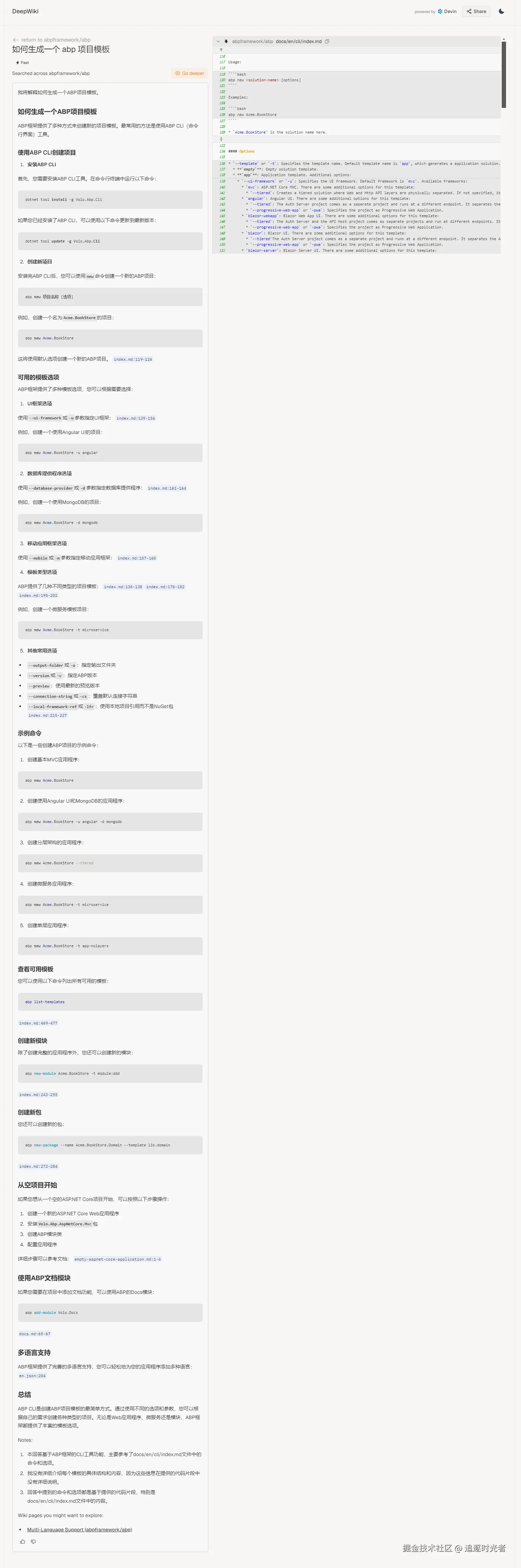 直接一键就给我们生成了 abp 源代码的项目详细 Wiki 文档: