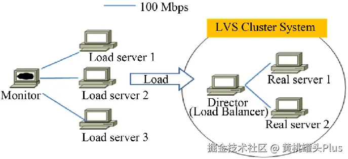 - DS(Director Server,流量调度服务器):是充当 LB 流量入口的服务器,负责负载均衡策略的执行和流量分发。所以也称为 FE(前端服务器)。