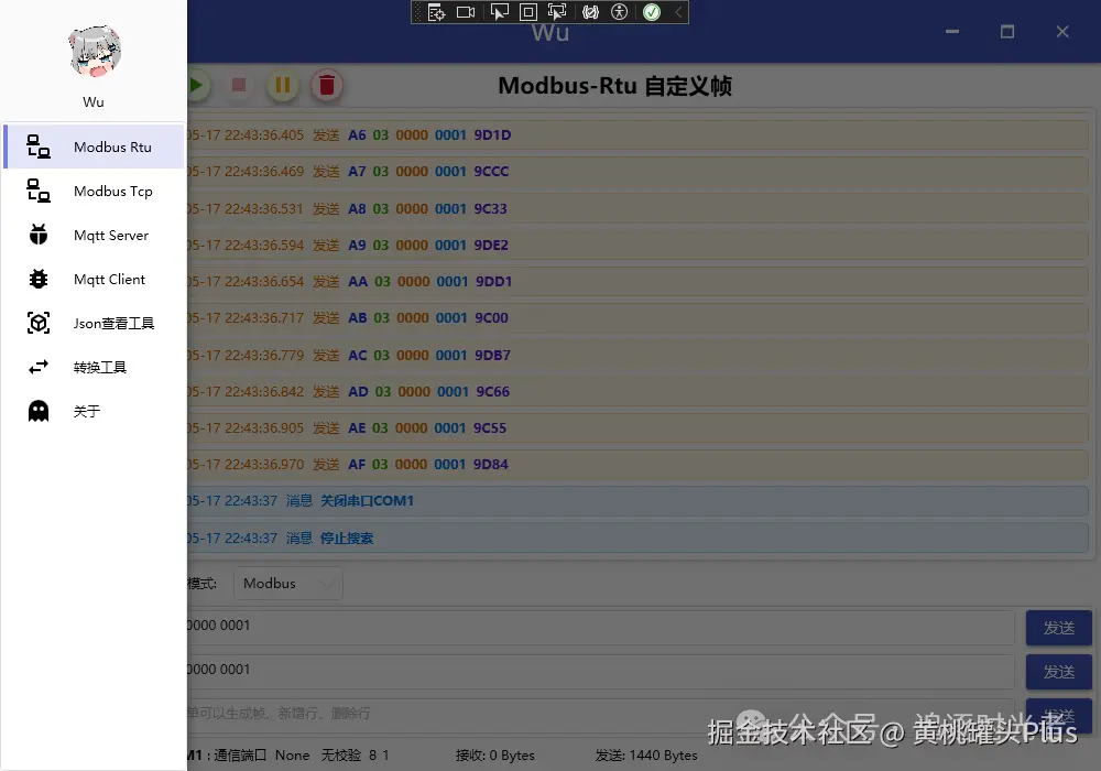 今天大姚给大家分享一款基于 C#、WPF、Prism、MaterialDesign、HandyControl 开发的通讯调试工具(支持 Modbus RTU、MQTT 调试,界面色彩丰富):Wu.CommTool。