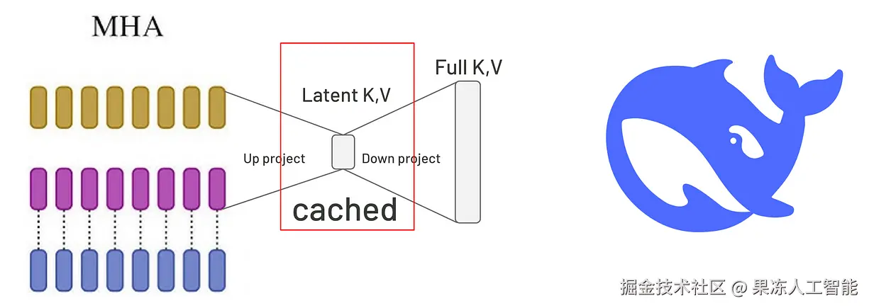 中国AI初创公司DeepSeek在今年年初发布聊天机器人后,市值暴涨到一万亿美金。他们的产品不仅快,还开源。有传言说他们是靠分析ChatGPT生成的数据才成功的。但我读完他们的技术报告后,看到的远不止“数据分析”而已。DeepSeek推出了Flash Multi Latent Attention(Flash MLA)技术,这让他们的AI科学家可以更快训练模型。它不是保存完整的K和V,而是用低秩压缩(low-rank compression)把它们投影成维度更小的latent向量,降低缓存体积。之后,在计算attention时再把它“上投影”。有趣的是,这个“上投影”的权重矩阵会和query里的矩阵权重融合(folded),让attention计算更快。