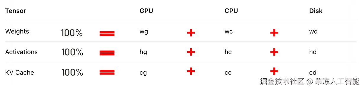 下一个关键点是:Flexgen 怎么把模型的权重合理分配到所有硬件上。