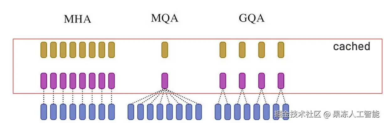 多头注意力是Transformer模型的核心,也是LLM的骨干。每个头会从不同角度看文本:有的关注主语和动词的关系、有的看词语、有的看句子结构。多头机制让模型更聪明,但也意味着每个头要用自己的一套KV对。这样在处理实时文本或者长文本的时候,Key和Value分量会非常庞大,占据大量内存。