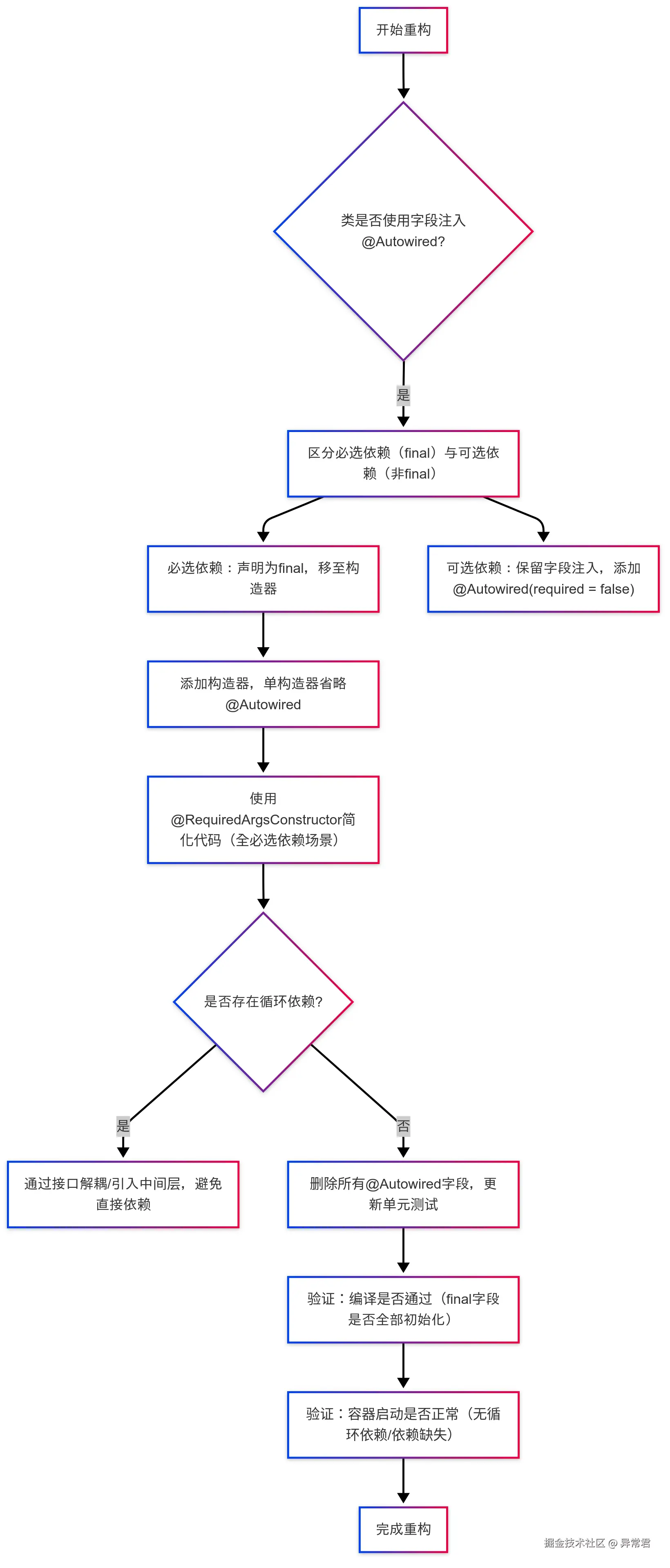 发现循环依赖不应通过字段注入"绕过",而应该通过重构解决: