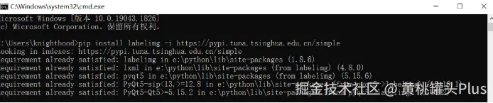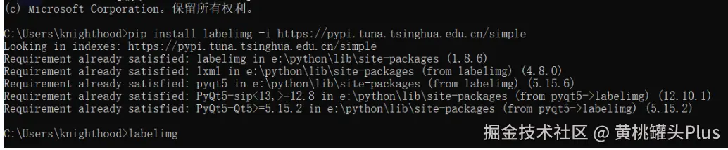 然后等待其自动帮你安装 labelimg 以及 lxml 和 pyqt5(下图由于笔者已经安装过了,就不重新卸载安装了)