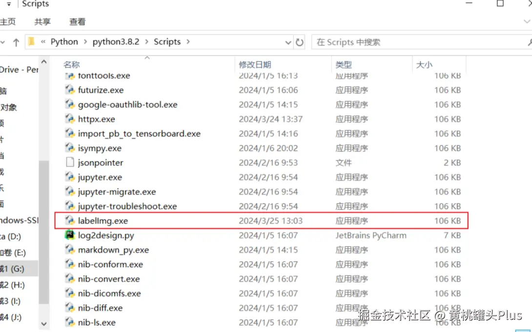 你可以试试使用 everything 搜索 labelimg.exe。该软件一般在你 python 目录下的 scripts 目录中,比如我的 labelimg 就在 G:\applicationsoftware\Python\python3.8.2\Scripts\