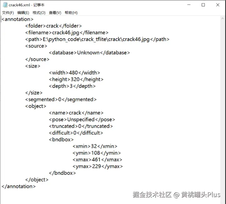 以记事本打开,内容如下,有许多信息(图片大小、通道数、标签名称、选框位置的参数)