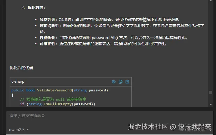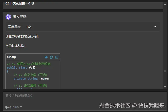 通义灵码提供智能问答功能,可以将其视为一个精通 ASP.NET 的程序员。