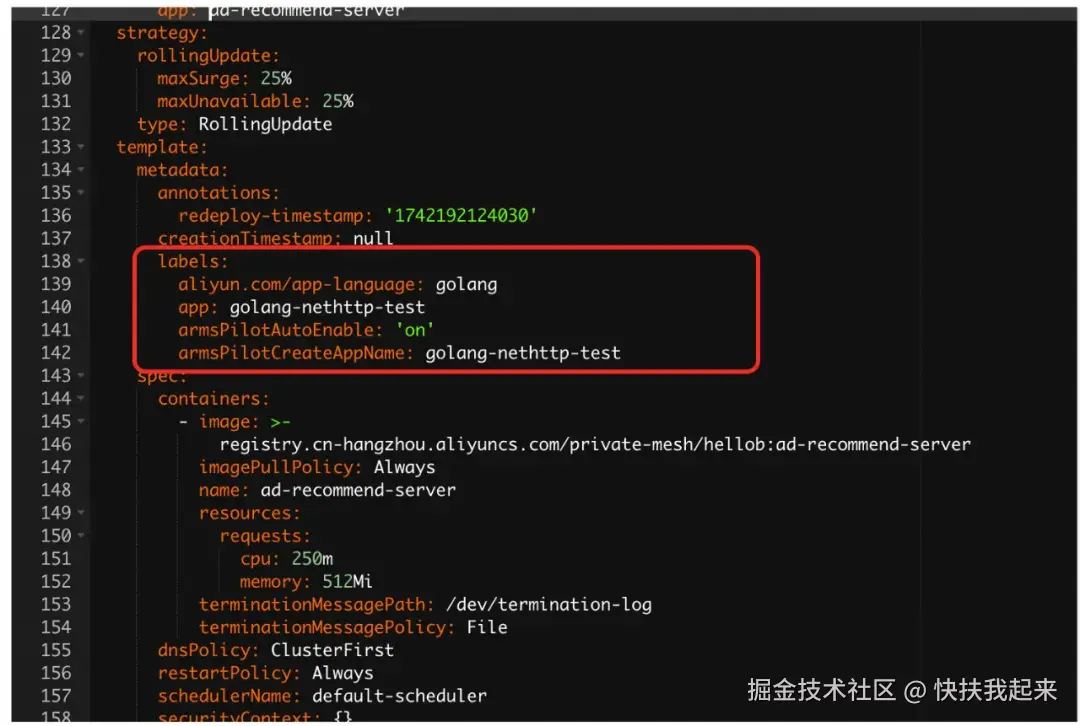 在安装好 ack-onepilot 组件后,只需要在创建工作负载时将以下 labels 添加到 spec.template.metadata 层级下,即可完成 Golang 应用的接入: