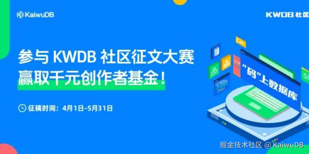 「码」上数据库 | KWDB 2025 创作者计划暨首届社区征文大赛已正式开启,5月31日前投稿即有机会领取千元现金奖励 🎁。